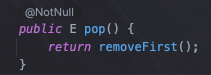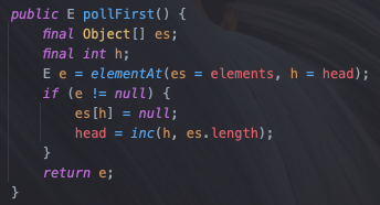 여기서 흥미로웠던 점은 데이터 추가 로직을 보면 null 값 추가를 허용하지 않는데도 불구하고 removeFirst 메서드와 pollFirst 메서드에서 null 처리를 해주는 로직이 있었다는 점이에요.