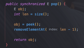 Stack 구현 클래스의 CRD (Create, Read, Delete) 메서드를 살펴보면 모두 Synchronized 키워드가 붙어있는걸 확인할 수 있어요.