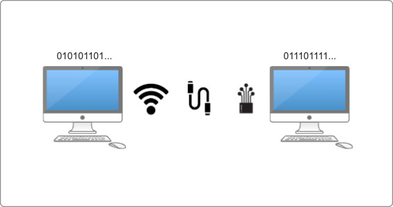 이러한 이진 코드를 주고받기 위해서는 물리적 통신을 주고받기 위한 물리적인 통로 즉, 매개체가 필요하겠죠? 대표적으로 디바이스간 통신은 주파수를 이용한 무선 통신, 전기 신호를 이용한 전기 통신, 빛을 이용하는 광 통신이 있어요.