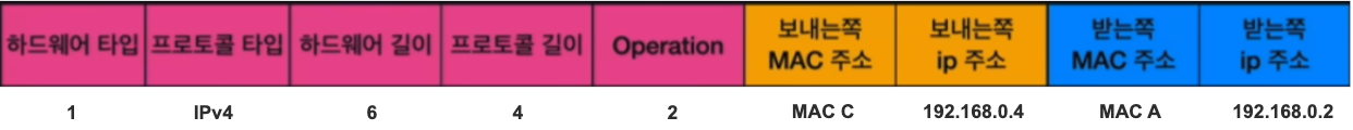 디바이스 C는 다음과 같이 ARP Packet을 만들어요.