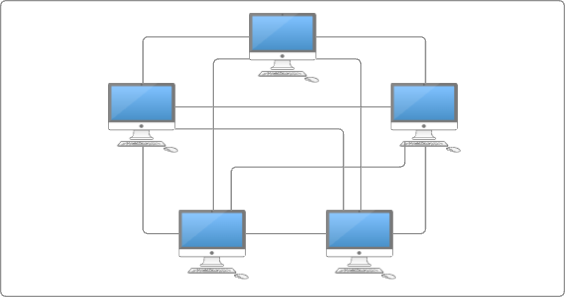 이렇듯 디바이스의 수를 점점 늘려가면서 연결을 하다 보면 디바이스의 수가 n 이라고 할 때 선의 수는 총 n(n-1)/2 개가 필요하다는 것을 알 수 있어요. 따라서, 이러한 방식으로 디바이스끼리 연결을 하는건 매우 비효율적이라고 볼 수 있겠네요.