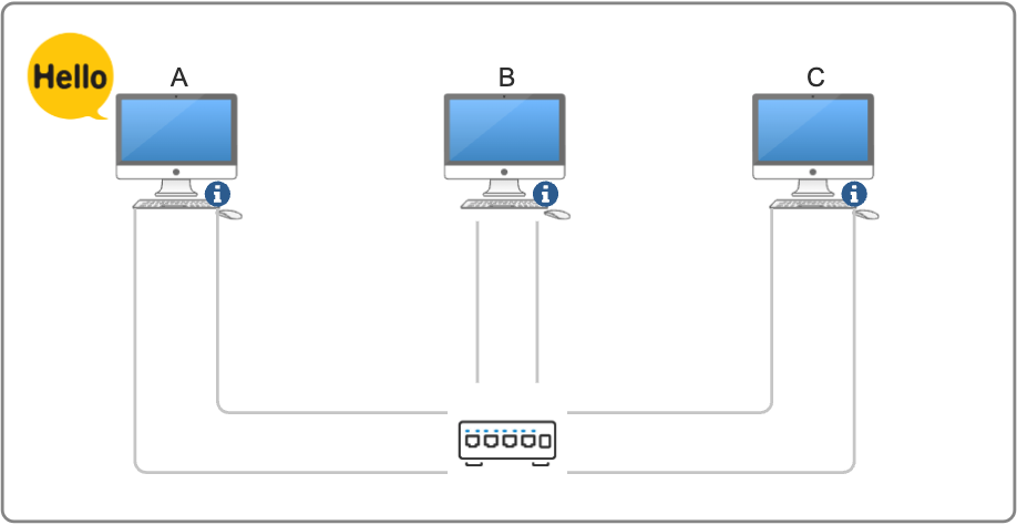 허브는 기본적으로 데이터가 들어오면 송신자를 제외하고 자신에게 연결된 모든 디바이스들에게 데이터를 보내는 형식을 사용해요. 수신자들은 해당 데이터들을 받고, 목적지 MAC Address를 비교한 후 자신의 것이 아니면 버리게돼요.